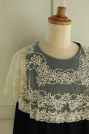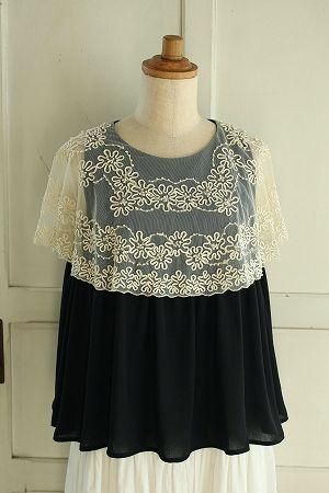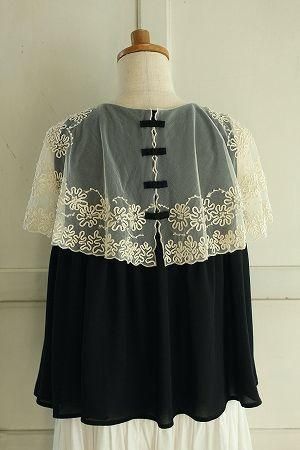 color ブラック、アイボリー、素材 ポリエステル100%、(別布)ナイロン100%、made in China、size F、着丈53m、バスト92cm、肩幅38cm※裏地は付いておりません。
