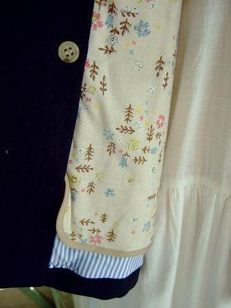 color ネイビー、素材 ウール50%、コットン50%、(身頃裏地)コットン100%、(袖裏地)ポリエステル100%、(ライナー表地)コットン100%、(ライナー中綿)ポリエステル100%、(ライナー裏地)ポリエステル100%、made in China、size 38、着丈65cm、バスト100cm、袖丈56cm、肩幅38cm、※haupiaさんオリジナルプリント生地のライナー付きです。ライナーはボタンで留まっております為、取り外し可能となります。