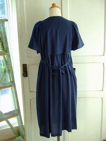 color ネイビー、素材 cotton100%、made in Japan、size 38、着丈100cm、バスト フリー、袖丈22cm、肩幅38cm、※裏地は付いておりません。