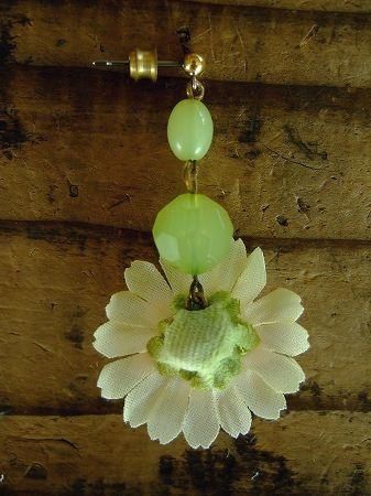 color クリーム×ピンク、グリーン、素材 真鍮、コットン、made in JAPAN、size (ガーベラ)直径3cm、(全長)5cm