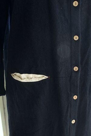color ネイビー、素材 ウール80%、ポリエステル10%、ナイロン5%、アクリル5%、(別布)コットン100%、size 38、着丈92cm、バスト100cm、袖丈53cm(切替しより50c)、肩幅38cm、※裏地は付いておりません。