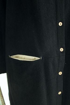color ブラック、素材 ウール80%、ポリエステル10%、ナイロン5%、アクリル5%、(別布)コットン100%、size 38、着丈92cm、バスト100cm、袖丈53cm(切替しより50c)、肩幅38cm、※裏地は付いておりません。