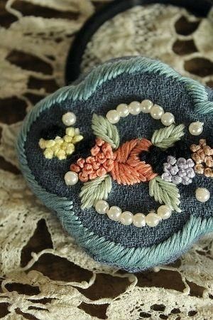 nesessaireフラワーハンド刺繍ヘアゴムBL