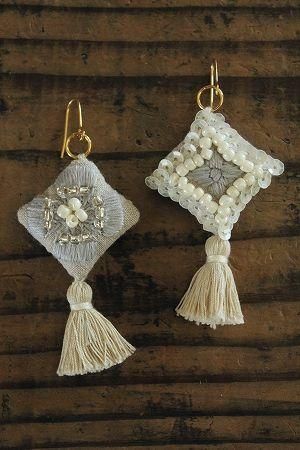 nesessaireフラワーハンド刺繍ピアスBL