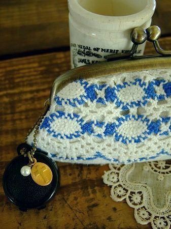 color アイボリー、オフホワイト、ブルー、素材 リネン、コットン、合皮、size 6.8×11.5cm※フランスアンティークリネン、フランスアンティークレース、ヴィンテージチャーム、チェコグラスパール使用。