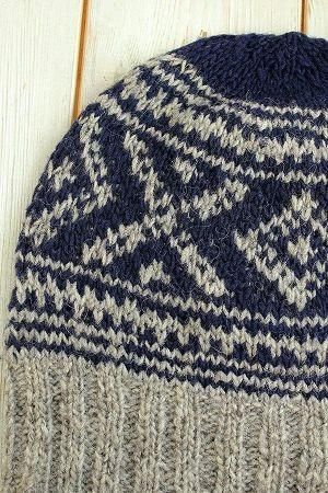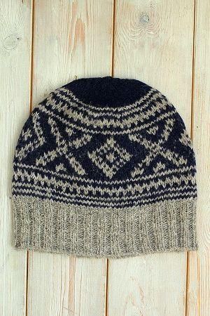 color グレー×ネイビー、素材 wool100%、made in PERU、size F、頭周り48cm、深さ23cm、※ハンドメイドの為、1点1点多少のサイズの誤差が生じる場合がございます。予めご了承くださいませ