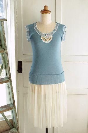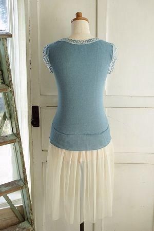 color ブルー、(チュールスカート)アイボリー、素材 ポリエステル50%、レーヨン50%、(別布 ポリエステル100%)、made in England、size F、着丈101cm、バスト62cm、肩幅38cm、※裏地は付いておりません。スカート部分はチュール生地1枚のみとなります。インナーにワンピースやペチコートを重ねて着用下さいませ。