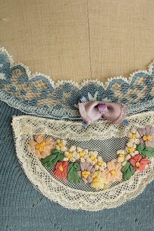 nesessaireフラワーリボン刺繍チュールワンピースBL