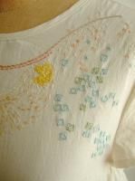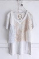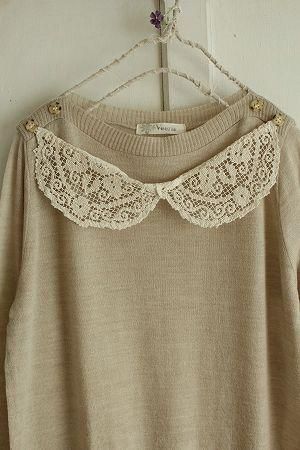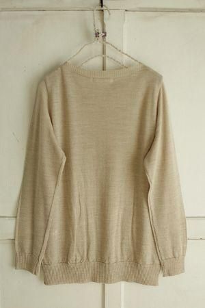 color ナチュラルベージュ、アイボリー、素材 wool100%、(レース部分)cotton100%、made in Japan、size F、着丈61cm、バスト95cm、袖丈62cm、肩幅38cm、※裏地は付いておりません。レース襟はボタンで留まっております為、取り外し可能です。