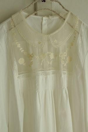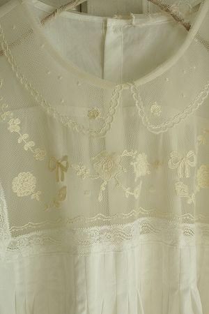 color オフホワイト、アイボリー、素材 コットン100%、(チュール部分)ポリエステル100%、(レース部分)コットン90%、ナイロン10%、made in China、size 38、着丈60cm、バスト98cm、袖丈40cm、肩幅38cm、※チュール部分に裏地は付いておりません。生地は無地ではなく斜めの格子の織りが施されたコットン生地を使用しております。