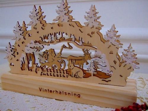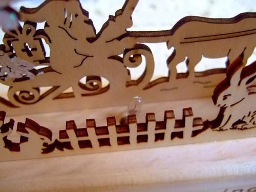 こちらはとても細かい木彫りのクリスマスライトです。よーく見てみるとうさぎやお家など発見!底のスライドケースを開け電池(単3×2個)を入れると小さな明かりが点きます。サイズ 15×23.5cm、木製。