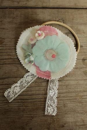 color ミント、ピンク、オフホワイト、素材 コットンなど、made in JAPAN、size (モチーフ)5.5×7cm、※オーガンジーの生地の中に布花が閉じ込められています。