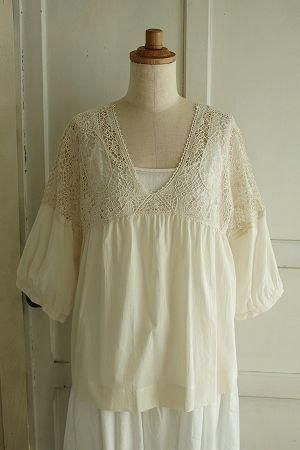 color アイボリー、素材 コットン100%、(レースモチーフ)コットン100%、made in China、size 38、着丈59cm、バスト100cm、袖丈44cn、肩幅38cm