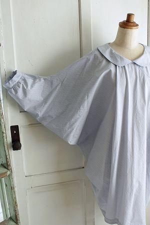 color オフホワイト×ブルー、素材 cotton100%、made in Japan、size 38、着丈90cm、バスト フリー、裾周り106cm、袖丈43cm、肩幅38cm、※裏地は付いておりません。