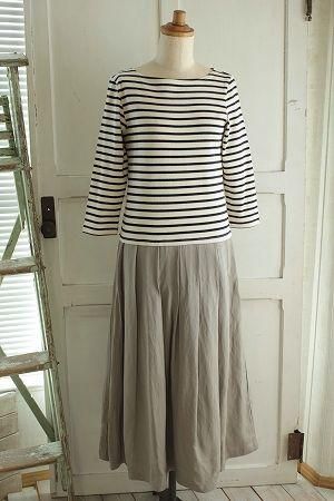 color (ボーダー)アイボリー×ブラック、(スカート部分)グレー、素材 コットン100%、(スカート部分) リネン55%、レーヨン45%、(裏地) ポリエステル100%、size 38、着丈122cm(トップ50cm)、バスト82cm、袖丈44cm、肩幅38cm、※裏地はスカート部分のみとなります。