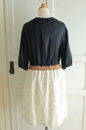 color (トップ)ネイビー、(スカート)オフホワイト、(刺繍)アイボリー、素材 (トップ)キュプラ100%、(スカート部分)コットン100%、(刺繍糸)レーヨン45%、コットン38%、リネン17%、(ウエスト部分)ポリエステル100%、(裏地)ポリエステル100%、made in China、size 38、着丈94cm(トップ40cm)、バスト100cm、袖丈40cm(切替しより31cm)、肩幅38cm※背中にはファスナー・ウエスト部分にはゴムが施されています。裏地はスカート部分のみとなりましてトップには付いておりません。
