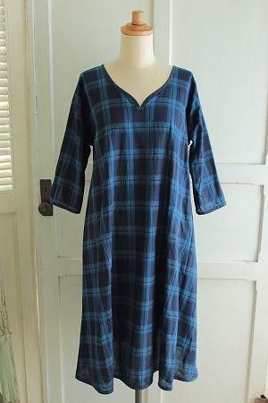 color ネイビー×ブルー、素材 cotton100%、made in Japan、size 38、着丈95m、バスト102cm、袖丈40cm(切替しより31cm)、肩幅38cm、※裏地は付いておりません。