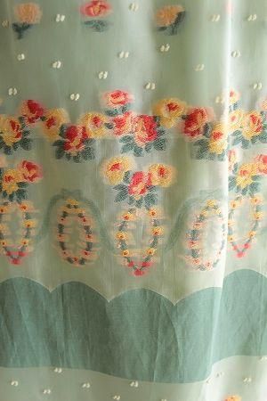 color オフホワイト、グリーン、オレンジ、レッド、素材 (表地)アクリル39%、キュプラ31%、ナイロン14%、コットン11%、ウール5%、(別地)シルク100%、(アンダードレス)キュプラ100%、made in Japan、size F、着丈92cm、バスト116cm、袖丈9cm、肩幅38cm、※セパレートタイプのキャミワンピースの裏地付きです。透け感のあるシースルー素材となります。