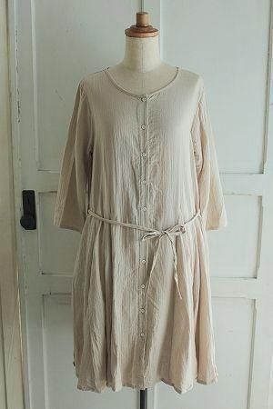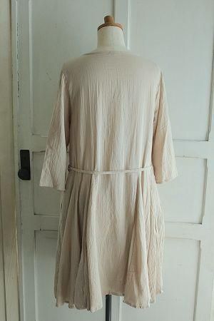 color ベージュ、素材 cotton100%、size 38、着丈93cm、バスト96cm、袖丈43cm、肩幅38cm、※裏地は付いておりません。