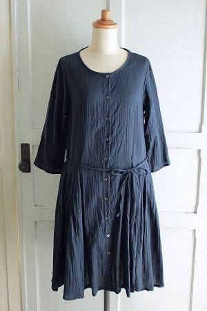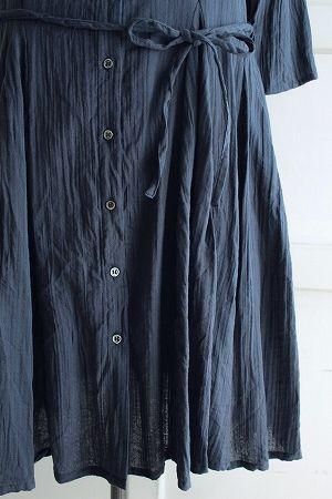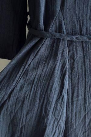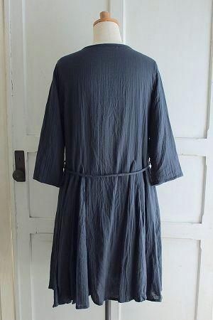 color ネイビー、素材 cotton100%、size 38、着丈93cm、バスト96cm、袖丈43cm、肩幅38cm、※裏地は付いておりません。