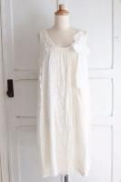 color オフホワイト、素材 cotton90%、Linen10%、made in Japan、size 38、着丈82cm、バスト98cm、袖丈23cm(切替しより16cm)、肩幅38cm、※裏地は付いておりません。