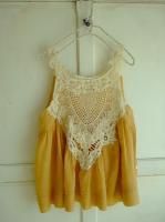 color アイボリー、素材 コットン100%、(モチーフ部分)ナイロン100%、(レース部分)コットン90%、ナイロン10%、made in Japan、size 38、着丈54cm、バスト92cm、袖丈10cm、肩幅38cm