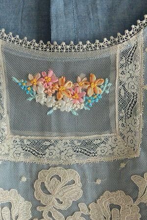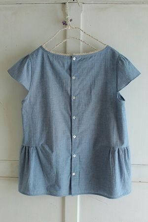 color ブルー、素材 コットン100%、(モチーフ部分)ナイロン100%、(レース部分)コットン90%、ナイロン10%、made in Japan、size 38、着丈54cm、バスト92cm、袖丈10cm、肩幅38cm