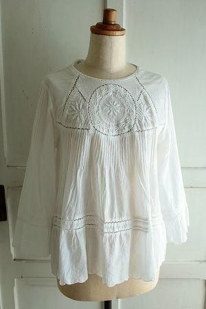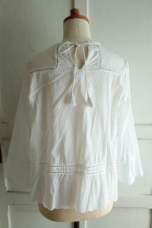 color オフホワイト、素材 cotton100%、made in India、size M、着丈57cm、バスト100cm、袖丈47cm、肩幅38cm