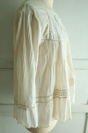 color アイボリー、素材 cotton100%、made in India、size M、着丈57cm、バスト100cm、袖丈47cm、肩幅38cm