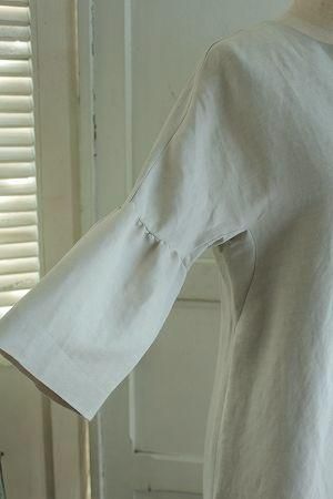 color アイボリー、素材 リネン62%、レーヨン35%、ポリウレタン3%、(裏地)ポリエステル100%、made in Japan 、size 38、着丈87cm、バス92cm、袖丈40cm(切替しより19cm)、肩幅38cm