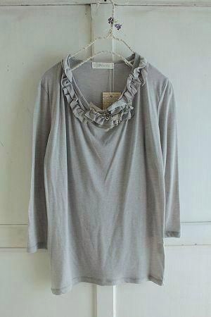 color グレー、素材 コットン65%、ポリエステル35%、made in Japan、size F、着丈65cm、バスト92cm、袖丈47cm、肩幅38cm