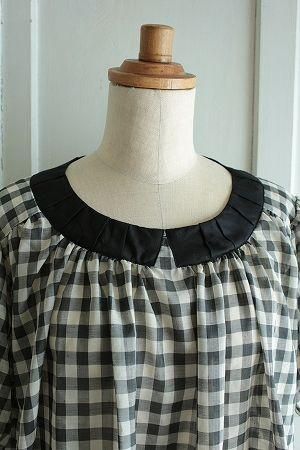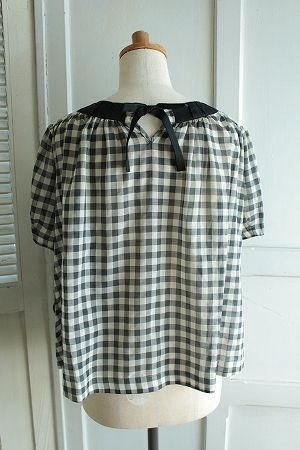color オフホワイト×ブラック、素材 ポリエステル100%、(別布1)コットン100%、(別布2)コットン75%、シルク25%、made in Japan、size F、着丈54cm、バスト132cm、袖丈24cm、肩幅38cm、※裏地は付いておりません。