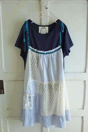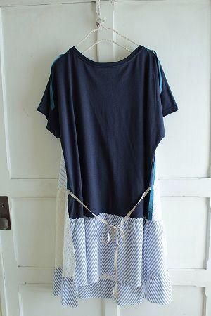 nesessaireストライプパッチワークエプロン風ワンピースNV
