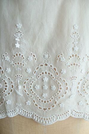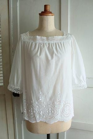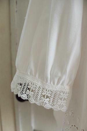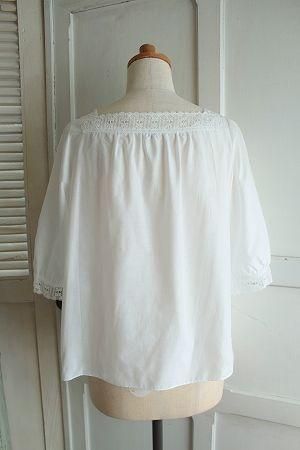 color オフホワイト、素材 cotton100%、(レース部分 cotton100%)、made in China、size 38、着丈55cm、バスト101cm、袖丈36cm、肩幅38cm