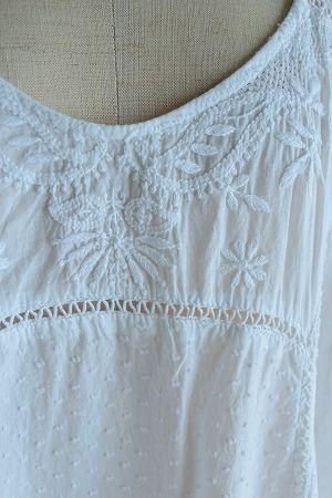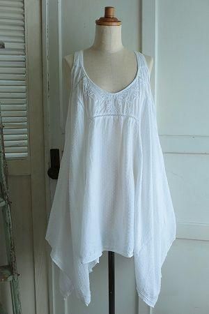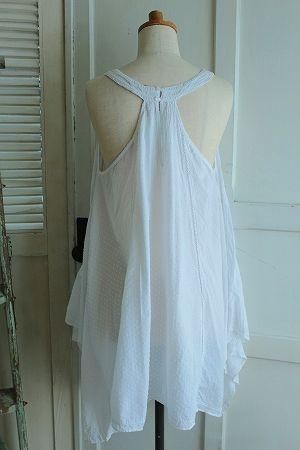 color オフホワイト、素材 cotton100%、made in India、size M、着丈78〜95cm、バスト110cm、肩幅38cm、※裏地は付いておりません。背中が大きく開いたデザインとなっております。