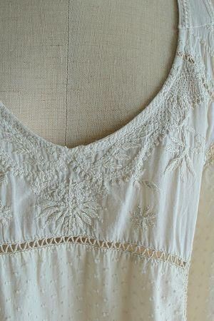 color アイボリー、素材 cotton100%、made in India、size M、着丈78〜95cm、バスト110cm、肩幅38cm、※裏地は付いておりません。背中が大きく開いたデザインとなっております。