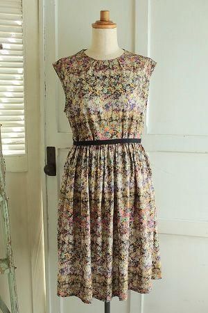 color ブラック、パープル、ブルー、レッド、ピンク、イエロー、素材 コットン100%、size 38、着丈93m、バスト98cm、袖丈4cm、肩幅38cm、※裏地は付いておりません。写真のような風合いのインクジェットプリントが施されております。