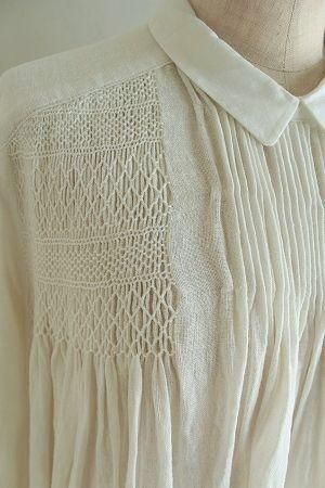nesessaire ハンドスモッキングギャザーシャツワンピースWH