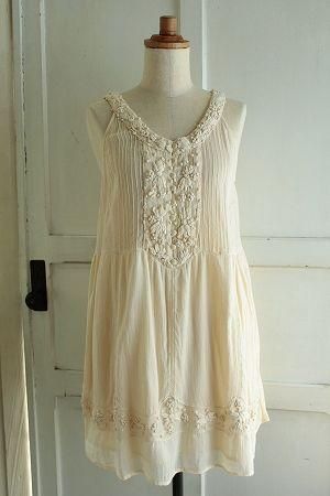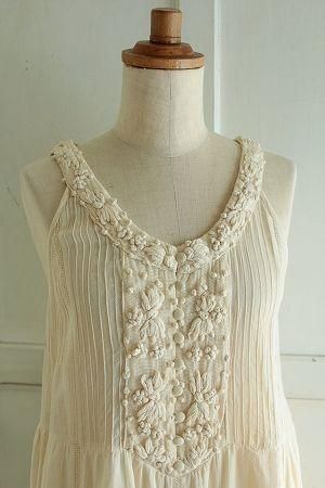 color アイボリー、素材 cotton100%、made in India 、size 38、着丈76cm、バスト95cm、肩幅38cm、※ウエストの切替し下より同素材のコットン生地が2枚重ねになっております。