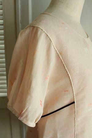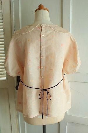 color ピンク、素材 リネン65%、アセテート28%、ナイロン7%、made in China、size 38、着丈55cm、バスト106cm、袖丈22cm、肩幅38cm