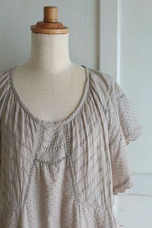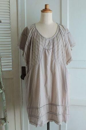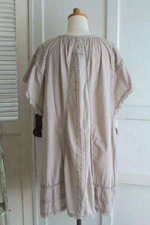 color モカベージュ、素材 cotton100%、made in India、size M、着丈82cm、バスト110cm、袖丈20cm、肩幅38cm、※裏地は付いておりません。