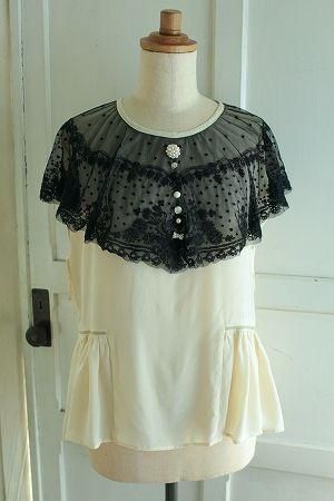 nesessaireシルクデシンチュールレースケープ襟ブラウス