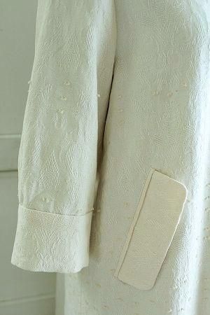 color アイボリー、素材 コットン99%、ナイロン1%、(別布)コットン100%、(裏地)ポリエステル100%、made in Japan、size F、着丈90cm、バスト102cm、袖丈41cm、肩幅38cm、※左肩にスナップボタンが2つ付いています。