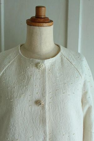 color アイボリー、素材 コットン99%、ナイロン1%、(別布)コットン100%、(裏地)キュプラ100%、made in Japan、size F、着丈56cm、バスト105cm、袖丈42cm、肩幅38cm、※フロントには大きめのスナップボタンが4つ施されています。