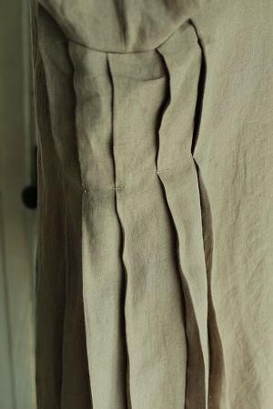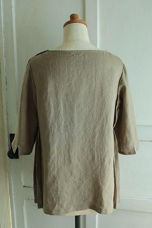 color ベージュ、素材 リネン100%、size 38、着丈61cm、バスト98cm、袖丈37cm、肩幅38cm、※サイドにタックが施されています。