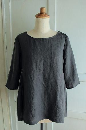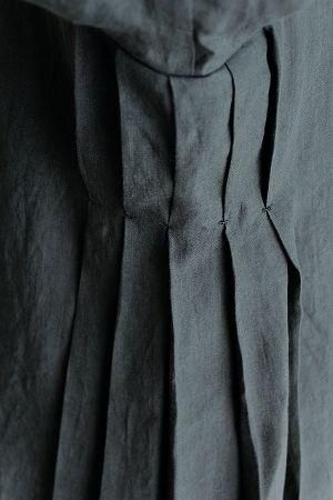 color チャコール、素材 リネン100%、size 38、着丈61cm、バスト98cm、袖丈37cm、肩幅38cm、※サイドにタックが施されています。
