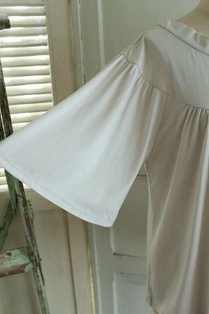color ライトグレー、素材 コットン50%、モダール50%、made in Japan、size 38、着丈60cm、バスト116cm、袖丈32cm、肩幅38cm