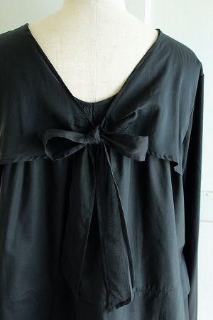 color ブラック、素材 コットン50%、モダール50%、(別布1)コットン100%、(別布2)コットン55%、シルク45%、made in Japan、size 38、着丈59cm、バスト100cm、袖丈54cm、肩幅38cm、※背中、裾部分は布帛のコットン素材となります