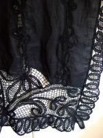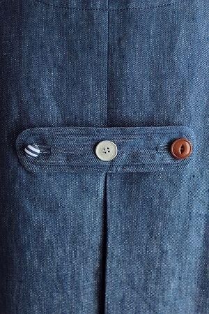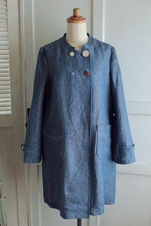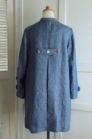 color ブルー、素材 リネン100%、(裏地)コットン100%、made in China、size 38、着丈88cm、バスト102cm、袖丈59cn、肩幅38cm
