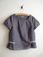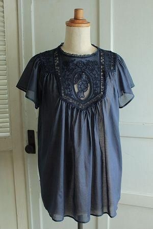 color ネイビー、素材 cotton100%、(別布)ナイロン100%、(刺繍糸)ポリエステル100%、(レース)コットン100%、made in China、size 38、着丈65cm、バスト108cm、袖丈16cm、肩幅38cm
